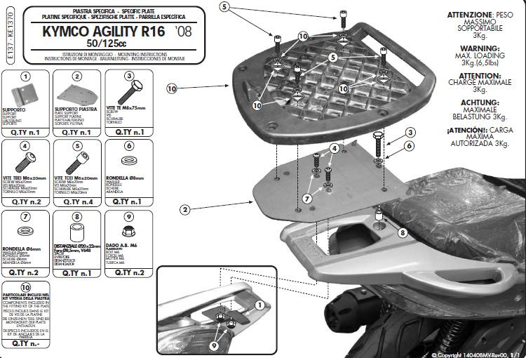 KAPPA STELAŻ KUFRA CENTRALNEGO KYMCO AGILITY 50/125/150/200 R16 (08-13) ( BEZ PŁYTY )