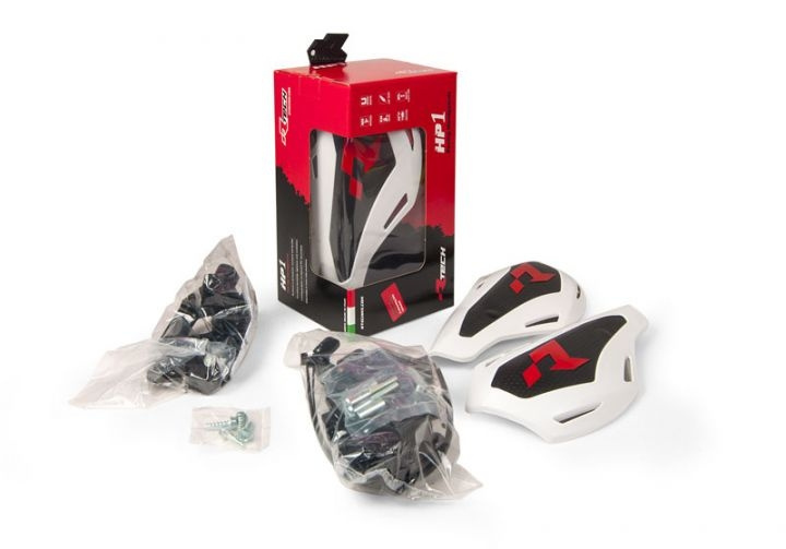 RACETECH (RTECH) OSŁONY RĄK (HANDBARY) HP1 KOLOR CZERWONY (Z MOCOWANIAMI Z OSŁONAMI POMP SPRZĘGŁA I HAMULCA NISSIN)