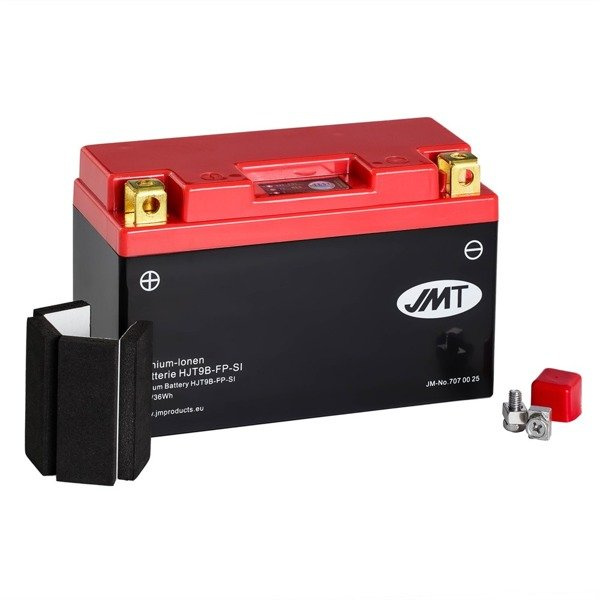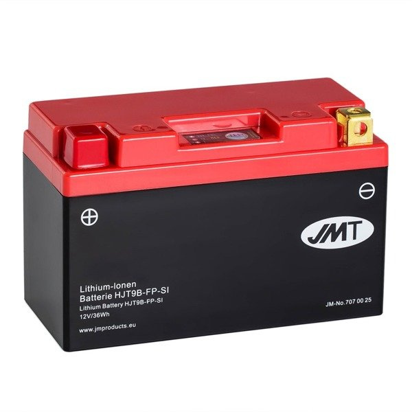 JMT oferuje aż 23 modele akumulatorów litowo-jonowych, które dzięki swej konstrukcji pokrywają blisko 90% zapotrzebowania rynku. Główne cechy to przede wszystkim ich bardzo niewielka waga. Stąd ich szerokie zastosowanie w sporcie motocyklowym z uwagi na dość tanią redukcję masy motocykla.
